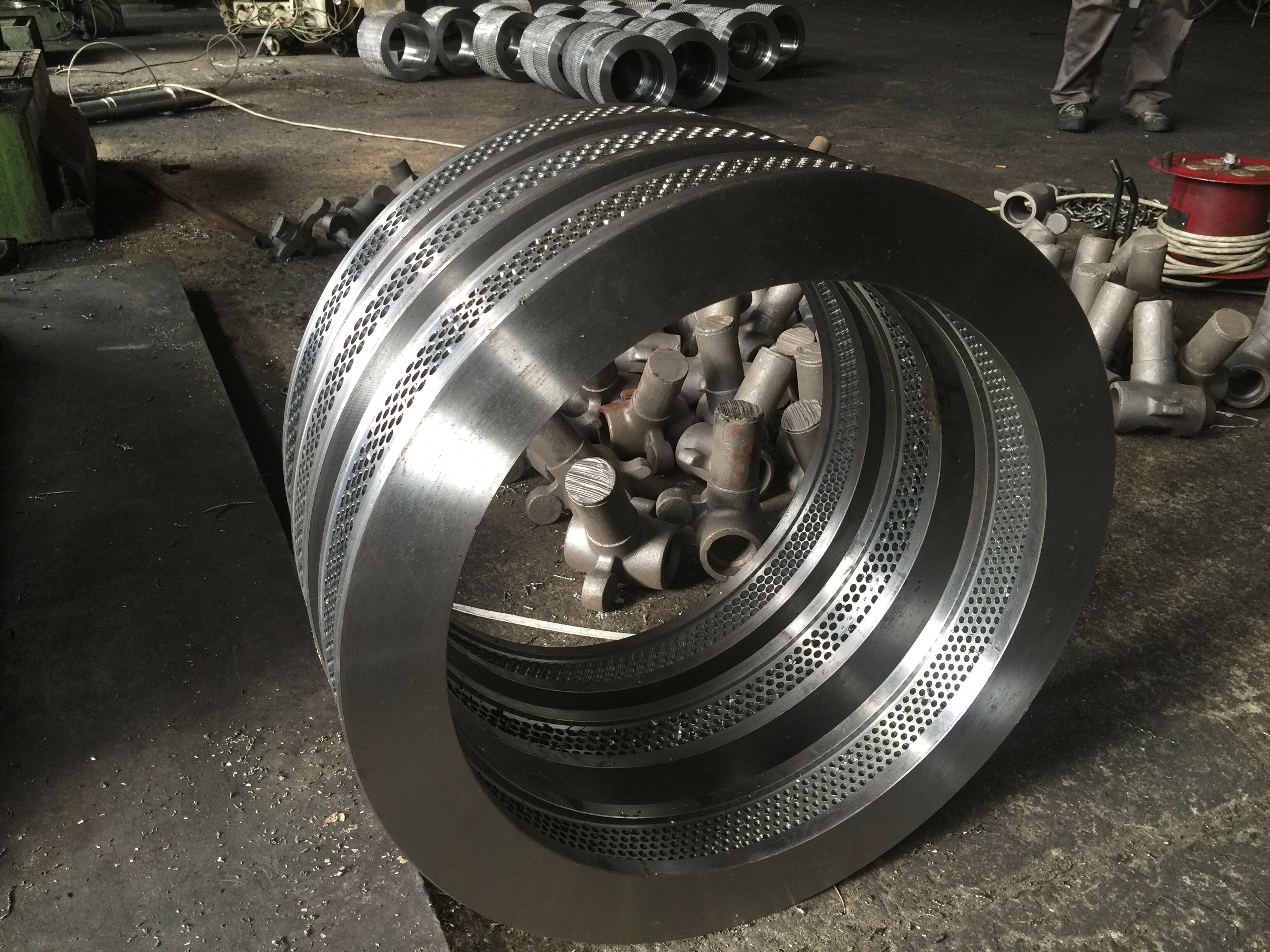環(huán)模通常由碳(合金)鋼或不銹鋼材料經(jīng)鍛壓、切削、鉆孔、熱處理等工序制成。環(huán)模鉆孔時(shí),應(yīng)采用多孔槍鉆加工,以保證各孔質(zhì)量。熱處理時(shí),應(yīng)采用真空淬火設(shè)備,可避免在普通設(shè)備中經(jīng)常出現(xiàn)的表面氧化的脫炭,從而獲得更高的硬度。